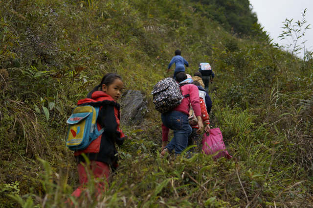 近年来,对于20户以上的村屯,国家级贫困县大化县正加大力度修建通村通屯道路。“我们从来没有花钱坐过一次车。”12岁的邓爱芬是他们当中年龄最大的学生。她告诉记者,其实他们也可以搭乘客车,但往返需要花费10元。而这12个孩子每周的生活费,最高的8元,最低的3元。这里不少学生为节省路费,依然选择步行上下学。