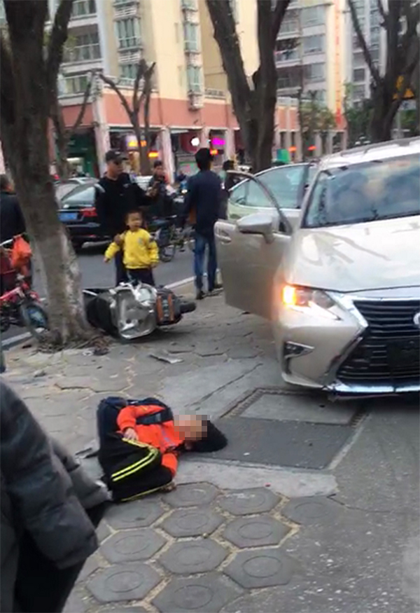 王先生向澎湃新闻提供的现场视频显示,一辆汽车停在人行道上,车身有损坏,一旁有小学生躺在地上,疑似受伤。