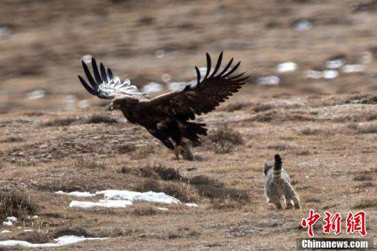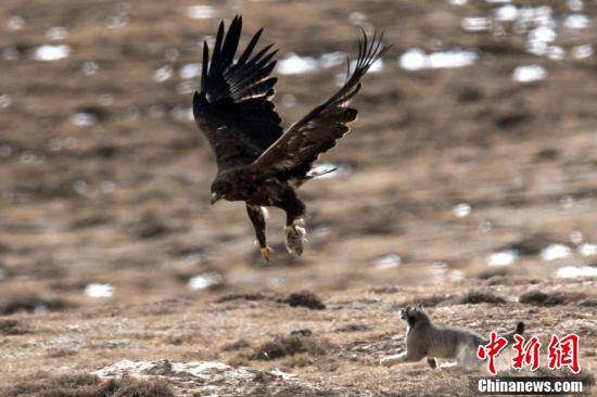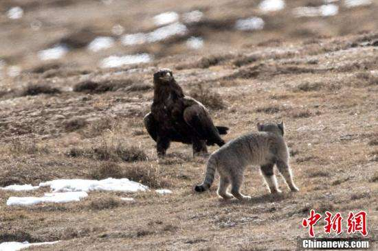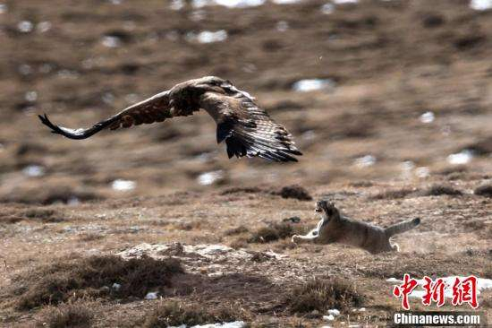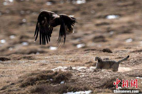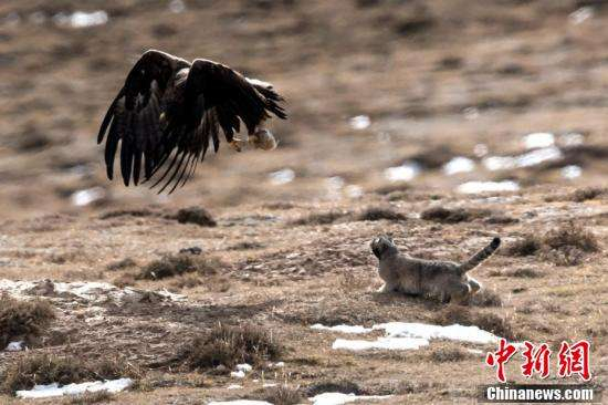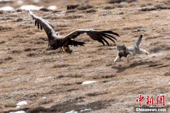 ↑兔狲被草原雕“打劫”画面。 徐永春 摄