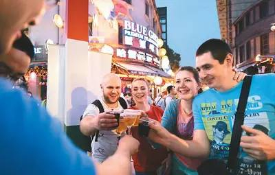 来自乌克兰的游客在浙江宁波老外滩品尝美酒。新华社记者 翁忻旸摄