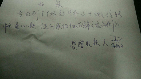 收到爱心人士筹集的善款