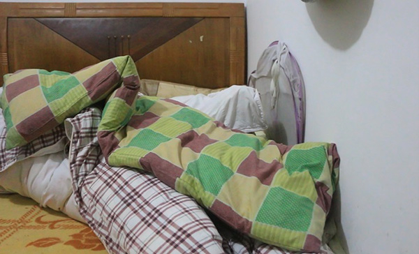 穿过楼道就是谭湘平租来的家——位于湖南长沙县星沙城西安置小区的一间包括卫生间在内15平米的二楼出租房。房租300元,按月支付。