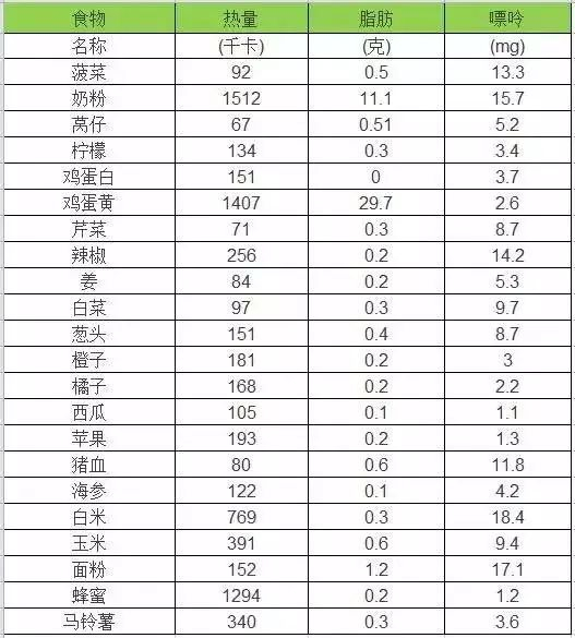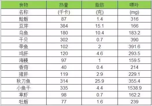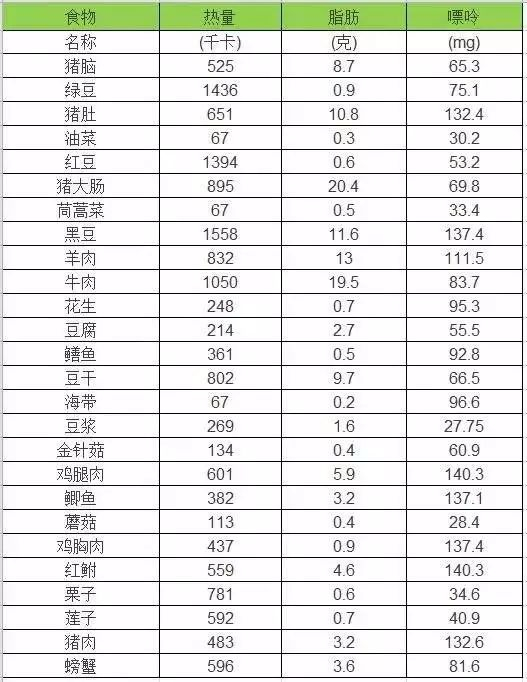 | 1张表 | 食物嘌呤含量一览表(如下) |