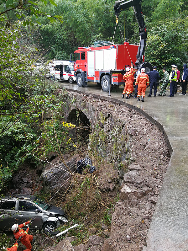 10月14日8点10分,缙云县公安局110指挥中心接到报警,称壶镇镇北洪往赤上村公路附近,有1辆轿车翻入路边5米多深的水沟中,车内疑似有人员被困。