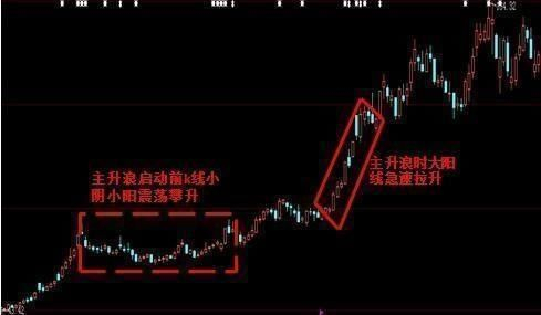 比如上图是近期某只大牛股主升浪启动前走势,启动前k线小阴小阳排列,走势上处于一个震荡攀升阶段,而进入主升浪之后,股价进入急速拉升阶段,不断拉出大阳线。