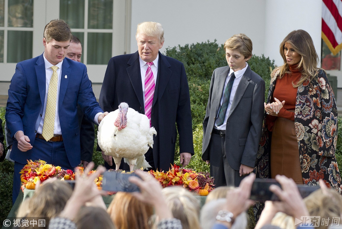 11月21日,在美国华盛顿白宫玫瑰园,美国总统特朗普参加火鸡“赦免”仪式。当日,美国总统特朗普在白宫举行一年一度的感恩节火鸡“赦免”仪式。在美国,每年11月的第四个星期四是感恩节,火鸡是感恩节的传统主菜,而美国总统在感恩节前夕“赦免”火鸡是白宫的一项传统活动。