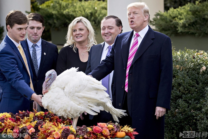 11月21日,在美国华盛顿白宫玫瑰园,美国总统特朗普)参加火鸡“赦免”仪式。