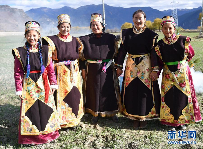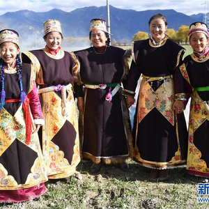 工布藏族服饰被称为“果秀”,为套头式长坎肩,以当地手工织染的氆氇或毛皮为原料。颜色一般为黑色和紫色,领口、袖口、下摆镶缎边。据悉,工布地区泛指林芝市下辖的林芝县、米林县及工布江达县一带。新华社记者 晋美多吉 摄