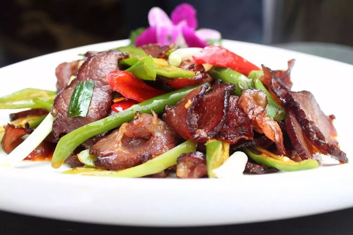 炒食,也是把腊肉用温水洗净,切成厚薄均匀的大片,加入大蒜苗、青辣椒、荷兰豆等时蔬翻炒后,即是一盘美味的腊味菜肴。如果嫌肥肉多了,可先将肥肉炼炼油,这样不仅可降低肥腻感,还可以增加配菜的腊香味。南方一些地方也有腊味炒年糕的烹饪做法。