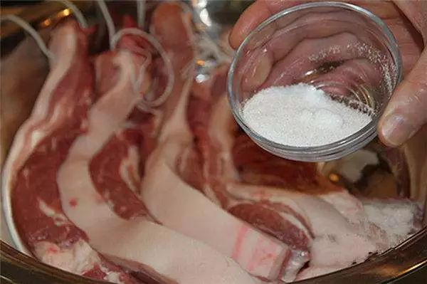 腌制腊肉的盐,最好使用粗粒的天然海晒盐,这种盐矿物质比较多,而且颗粒大,腌出来的肉格外香。用盐量一般是10斤肉用8两到1斤左右。要把盐均匀地抹在肉上,抹盐时最好用力揉一揉。然后放入陶制或者陶瓷容器中,再盖上盖子腌泡7天就行了。如果你够勤快,中间可翻一次缸,把上面与下面的肉交换一下位置。倘若家里没有陶、瓷之类容器,用搪瓷盆也行,但不能用塑料之类的容器。