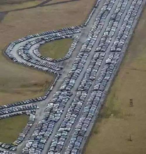 这样的新车停车场在世界各地多的不胜枚举。密密麻麻的新车停放在一起,却看不到一个买家。而且,送来的新车越来越多……