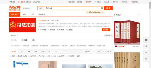 1.进入淘宝网后搜索司法拍卖。