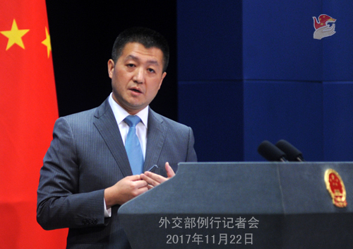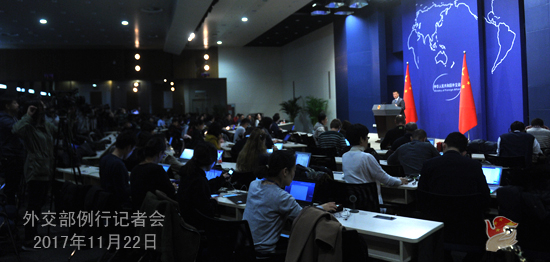 原标题:2017年11月22日外交部发言人陆慷主持例行记者会