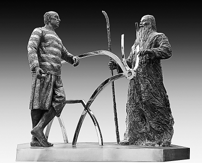 世纪回眸——毕加索与张大千(雕塑) 蔺宝钢