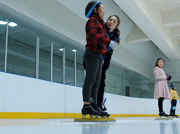 说到学校与冰雪结缘还是要追溯到2013年飞扬冰上运动中心的成立,“这里刚刚成立时正好有个特奥扶持项目,所以我们和杨扬合作,一起让孩子们来这里练习短道速滑。”