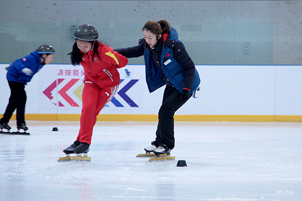 34岁的李秀明之前是黑龙江省的短道速滑运动员,15岁就拿了全国冠军,退役后她成了飞扬冰上运动中心的一名教练,免费义务地教这些孩子训练。