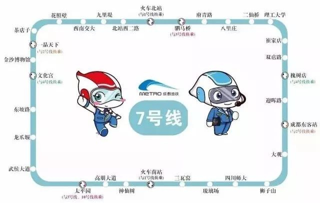 二仙桥、神仙树站、花照壁站、火车北站、成都东客站