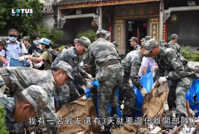 这群救灾不挂横幅标语、不插红旗、不喊口号的“迷彩绿”,却走进澳门市民社交圈成为“网红”。天灾无情人有情,军民鱼水写深情。解放军首次在澳门地区展开救灾,与澳门受灾同胞心贴在一起、劲用在一处,将卒倾力、公众认可。这种情怀,没有什么能够改变;这种力量,没有什么能够阻挡。