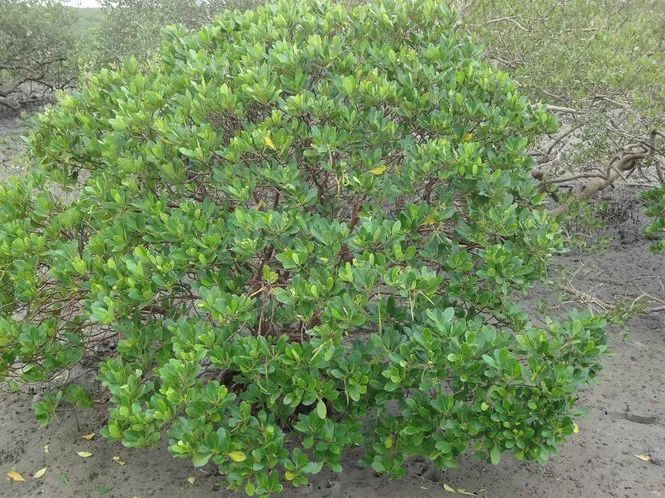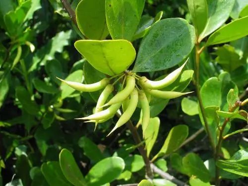 又名蜡烛果、黑脚梗、黑榄。灌木或小乔木,高1.5-4m。叶互生,革质,倒卵形或椭圆形。蒴果弯曲如新月形。花期12月至翌年1-2月。分布于福田海边红树林沿岸。与海榄雌、木榄、秋茄等植物共同组成深圳红树林。