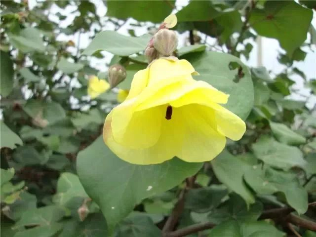 又名黄槿、海麻。常绿乔木、叶革质,近圆形,基部心形。花钟形,黄色,内面基部暗紫色。在深圳沿海河口和滩涂多有分布。通常与海桑、桐棉、老鼠簕等乔、灌木组成红树林群落。其枝叶浓密,花色金黄,耐盐碱,是滨海绿化的优良树种。