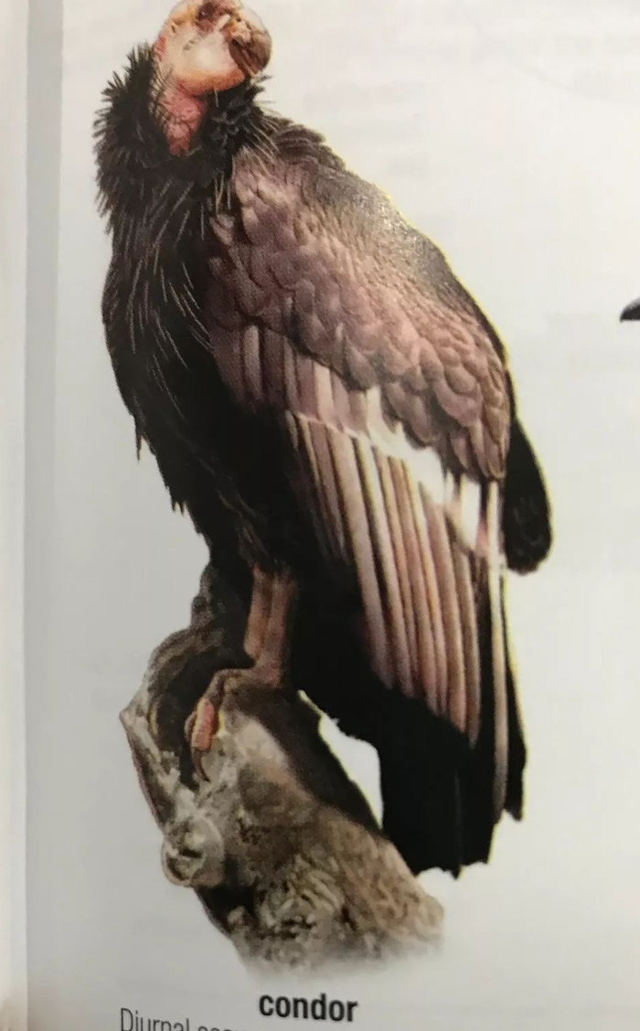 小编随手翻开手边的英文图解书发现,的确Condor“秃鹰”的形象与我们印象里的“雕兄”更加符合,虽然 Condor 是一个来自美洲的原生物种。(顺便提一句,字典里说秃鹰濒临灭绝,希望大家保护濒临物种。)