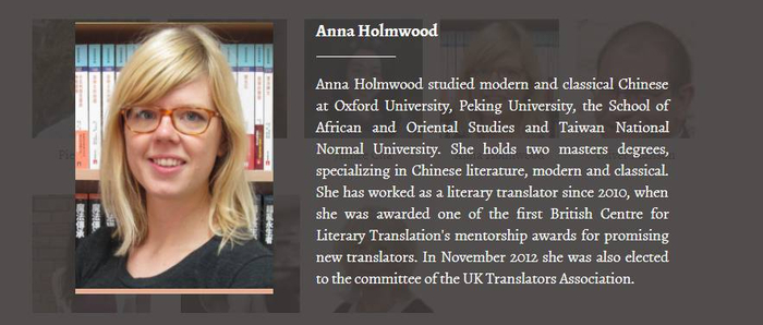 译者 Anna Holmwood,她有一个颇具古风的中文名字,叫“郝玉青”。