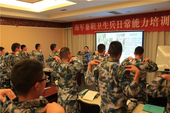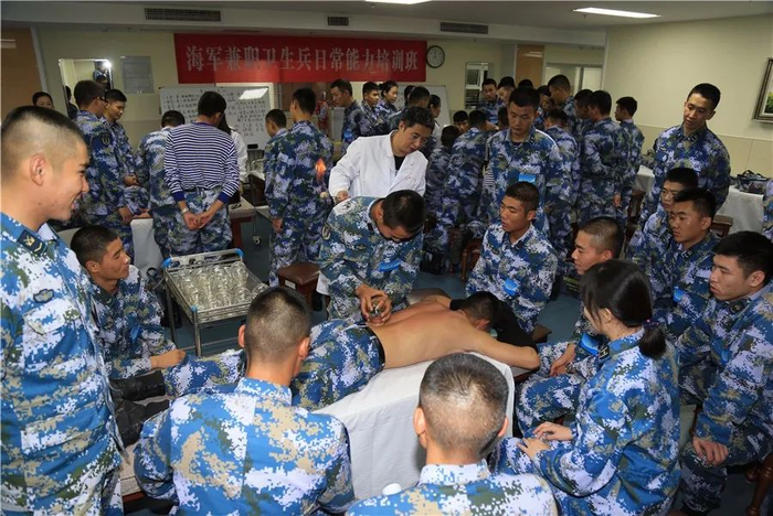 此次培训,由海军后勤部筹划组织,按照“身份兼职化、能力专业化”要求和“突出战时、重在平时”原则,以培养战场急救员、日常保健员和防病监督员为目标,区分应急应战能力和日常保障能力两个层次,采取军民融合、军内联合方式,依托海军青岛某疗养院和白求恩医务士官学校展开。