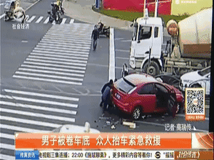 三轮车驾驶员被卷入车底。