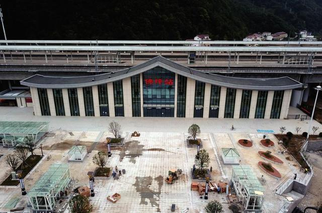 佛坪站整体像一只展翅翱翔的大鹏,寓意“山涧竹影,展翅翱翔”,在建设上还融入竹元素,凸显大熊猫特色。