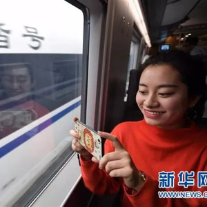 11月22日,参加模拟运行的体验人员在列车上拍照。新华社记者 薛玉斌 摄