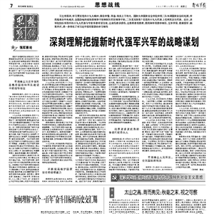 11月22日出版的《解放军报》在7版刊发报道了国防大学国家安全学院学员二队本期国家安全研究班组织的一场“十九大代表与专家学者共话习近平强军思想”互动交流会。