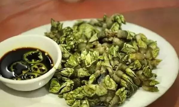狗爪螺像香波瓜子一样,蘸着调料吃,很特别,味道很鲜美。