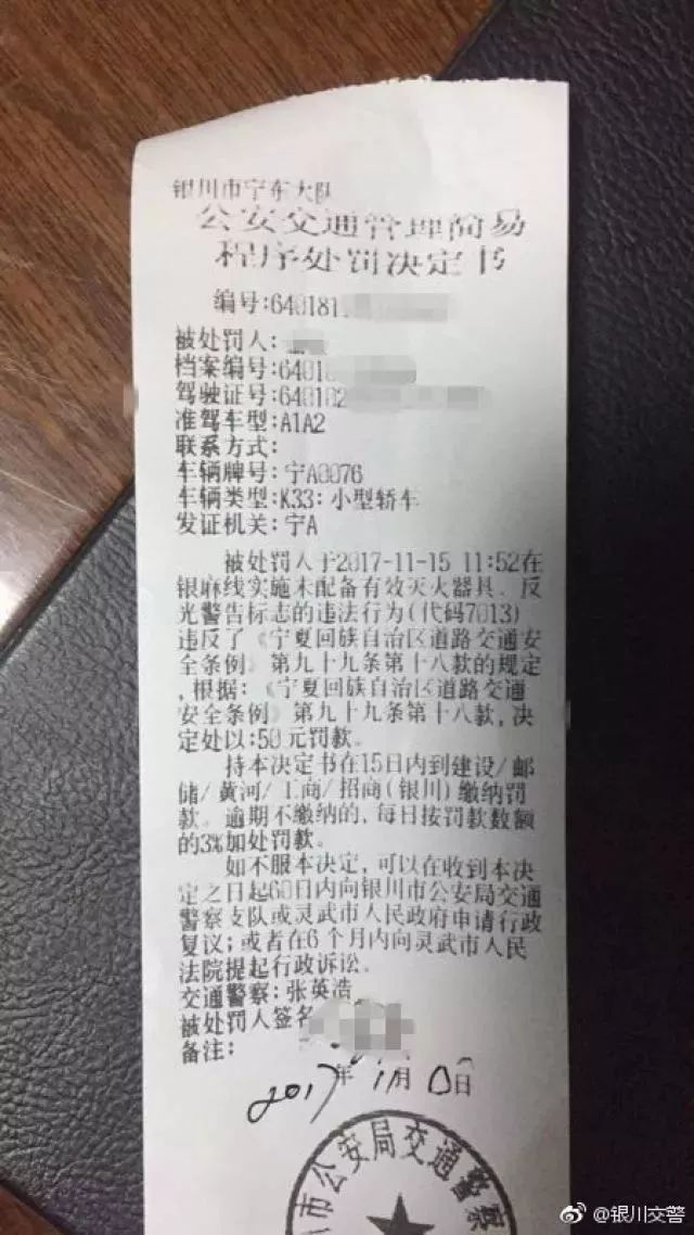 银川交警给自己开罚单