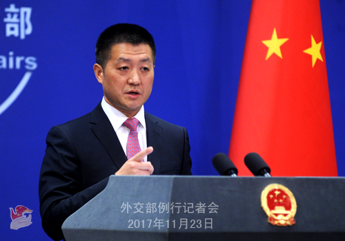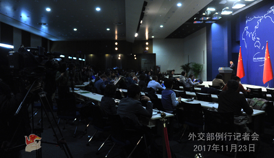 原标题:2017年11月23日外交部发言人陆慷主持例行记者会