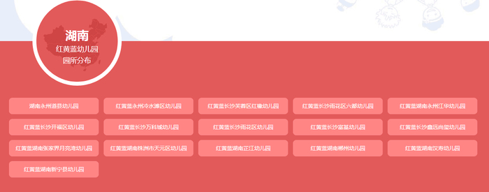 据红黄蓝官方发布的信息,长沙目前有7家红黄蓝幼儿园,分别是: