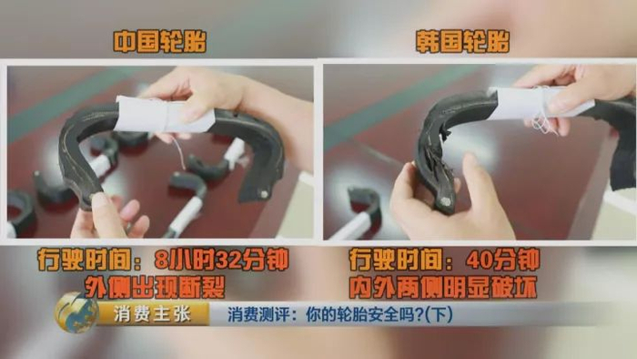 而这款韩国某品牌轮胎,只坚持了40分钟,甚至还没达到我国相关标准中1个小时下线最低要求。