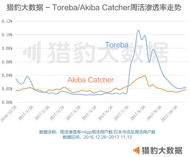 从活跃渗透率的走势来看,日本这两款人气抓娃娃App的发展都比较平稳,暑假是明显的高峰期,说明用户中还是有很大一部分是学生群体(日本暑假为7.20-8.31)。