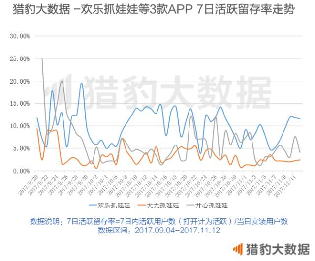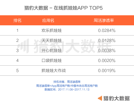 首先,在线抓娃娃App对新用户的吸引力非常有限。根据猎豹大数据统计,这类App的7日留存率普遍在10%以下。