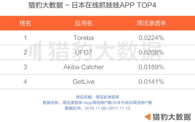 但即使是这样,我们发现日本在线抓娃娃App的瓶颈也非常明显,0.1%的周活跃渗透率已是极限,说是“风口”毕竟有点言过其实,在线抓娃娃似乎还是作为一桩“小而美”的生意来做比较合适。