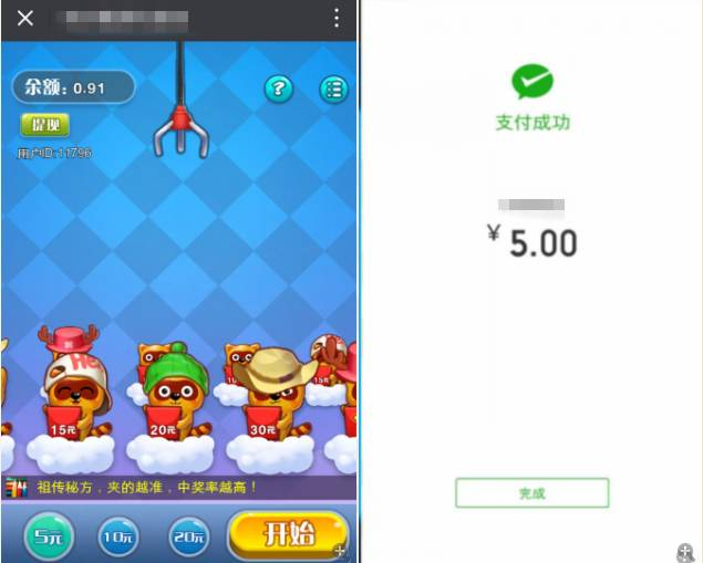 如某款在线抓娃娃App利用虚拟场景,让玩家从怀抱红包或金币的“娃娃”中任意抓取,进而兑换实体奖励或体现至微信钱包。