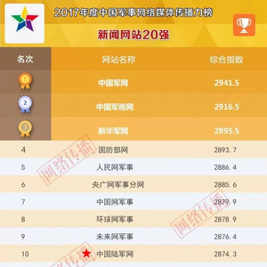 2017年度中国军事网络媒体传播力榜