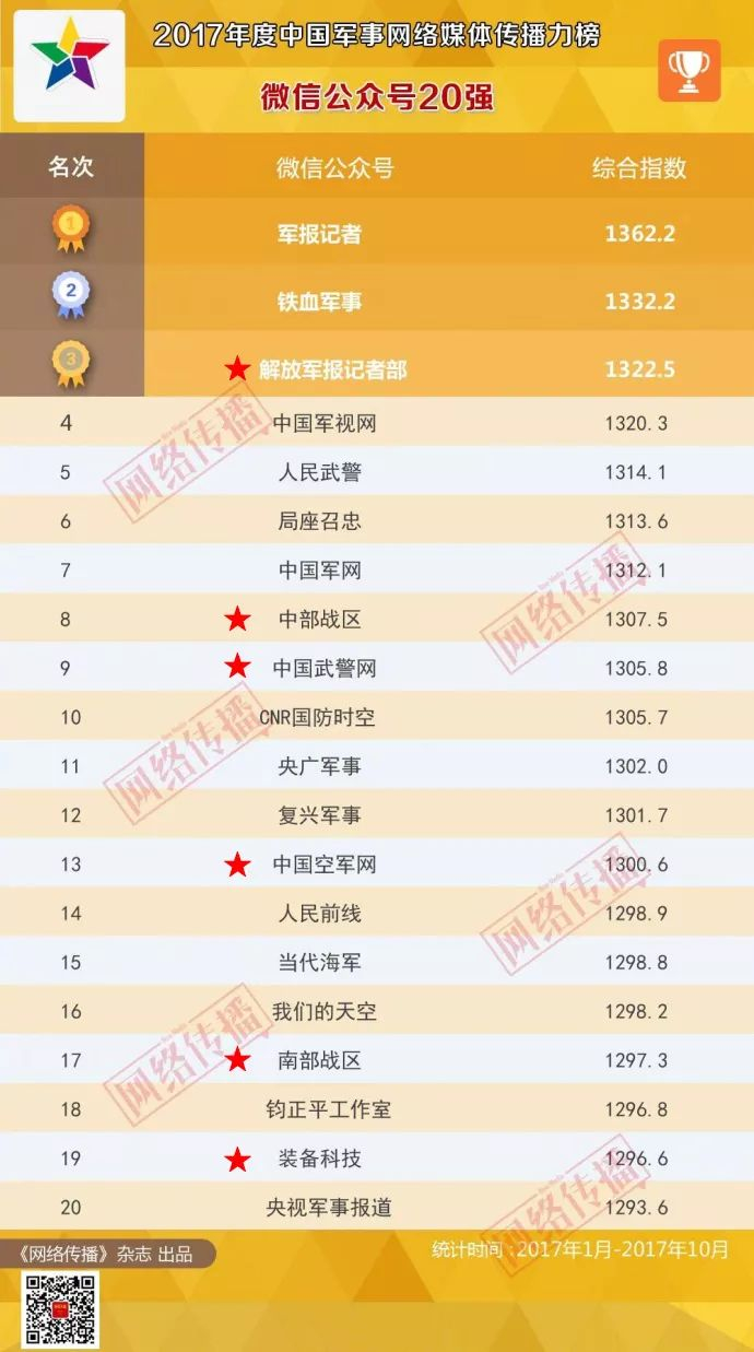 2017年度中国军事网络媒体传播力榜发布!解放军报社记者部5家网站、6家微信公众号上榜