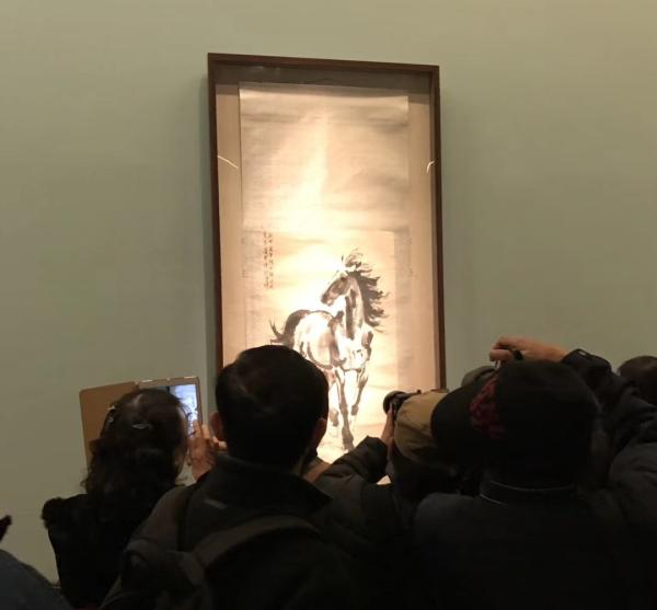 观众在徐悲鸿的“奔马”前拍照
