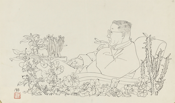 叶浅予,漫画文艺人物(老舍), 27 ×40cm,年代不详,中国美术馆藏