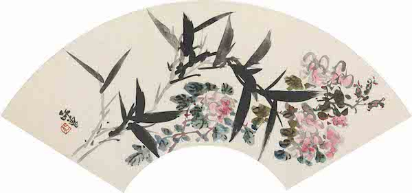 陈师曾,花卉•山水扇面册之三,19.5×55×8cm,国画,家属捐赠老舍、胡絜青藏画
