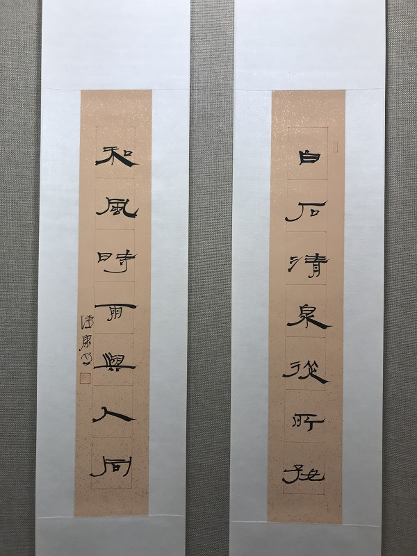 陆康 隶书七言对联