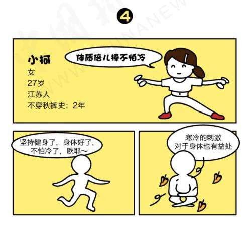 “真正开始不穿秋裤是从两年前开始,和我健身有关系,体质好了就不怕冷。”小柯说,两年前因为想减肥,她开始坚持健身、长跑,刚开始只在跑步时穿单裤,但慢慢地,连日常上下班也不穿秋裤了。