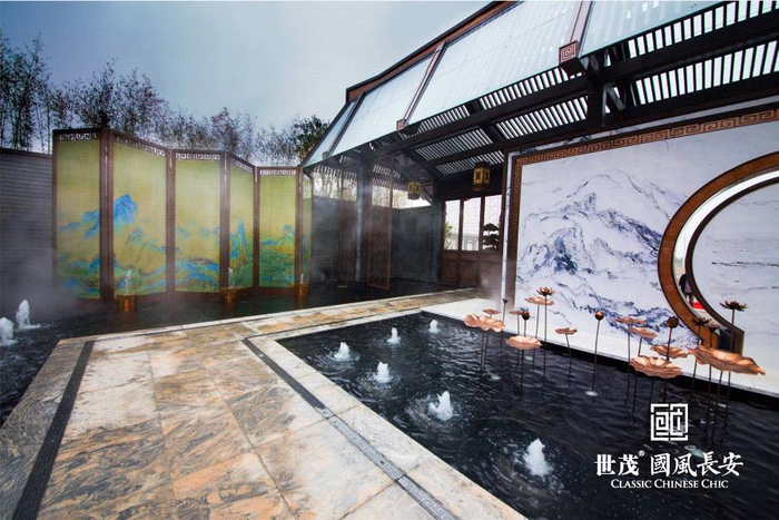 此外,为营造“明月松间照,清泉石上流”的天然意境,会所中的每棵迎客松的姿态都经过精挑细选,精心设计的镜面水景犹如点睛之笔,终成一幅让人流连忘返的绝美国风画卷。