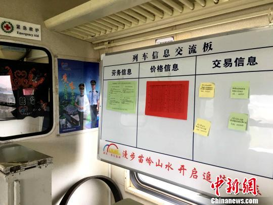 此外,列车上还设置信息板,城市的招工信息、沿线商品价格信息每周都会更新。旅客可以把自己家里的农副产品在信息板上发布,有购买意向的乘客就能通过电话联系。