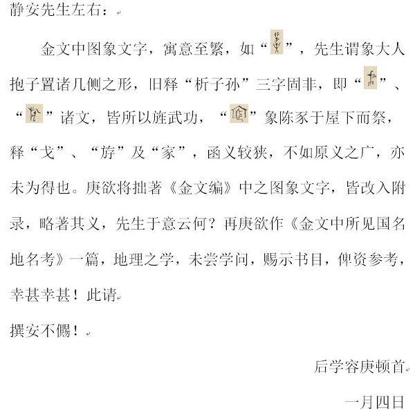 金文中的图象文字,涵义丰富,要是定成某字,涵义反而变得狭隘,如此考释金文是不得当的,不如原样保留为宜。我将在我编著的《金文编》里,更改一下体例,将这一类图象文字以附录的方式收入,不知老师意下如何。我还想写一篇考证金文中涉及的国名、地名的论文,但之前对地理之学涉猎较少,请您给我开列一个书目,好研习参考。